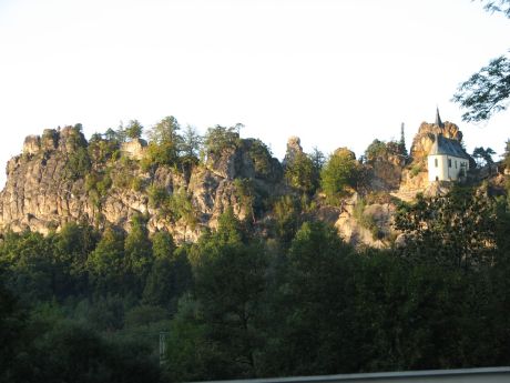 Widok na gród Skalny Vranov i Panteon