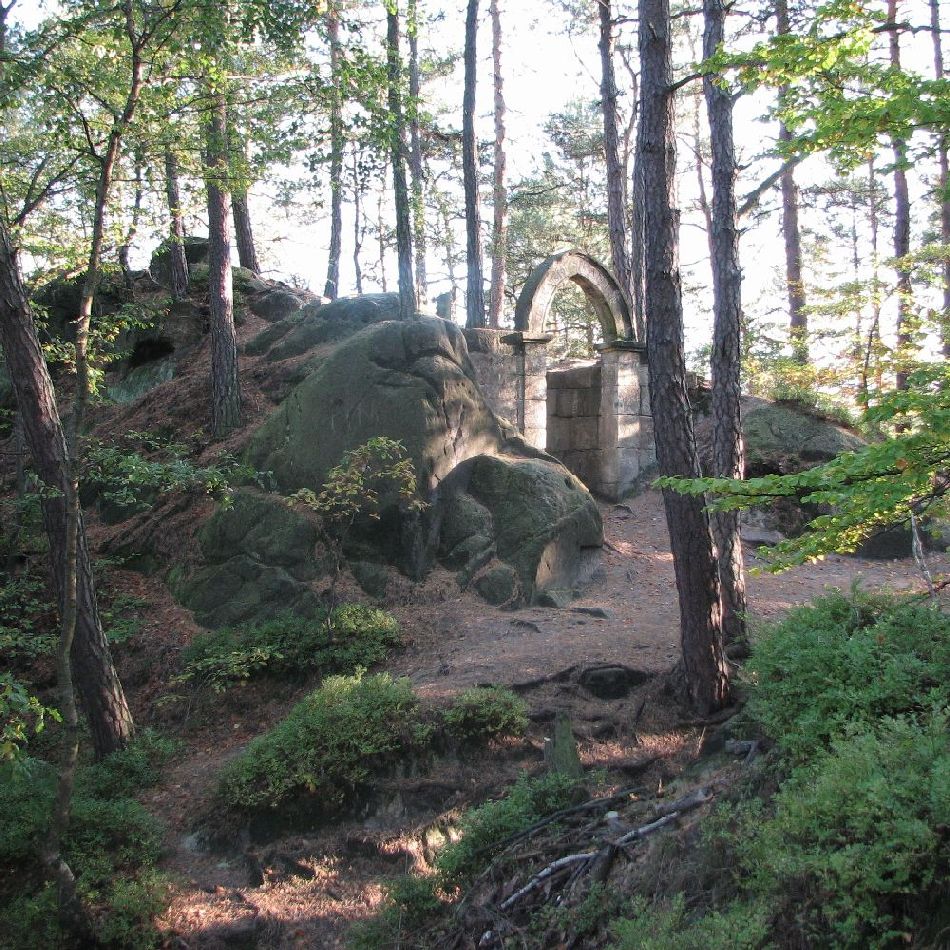 Zamek Vranov – Panteon wznosi się na wąskim i stromym urwisku z piaskowca nad prawym brzegiem rzeki Izery nad miejscowością Malá Skála i jest najdłuższym zamkiem skalnym w Czechach. Vranov został założony około 1425 roku, służąc przede wszystkim jako warownia. W 1802 roku dobra malostrańskie kupił przedsiębiorca František Zachariáš Römisch. Zlecił on przebudowę dojścia do zamku i na dużej wysokości nad rzeką Izerą zbudował punkt widokowy, z którego roztacza się piękny widok na miejscowość Malá Skála oraz dolinę rzeki Izery.